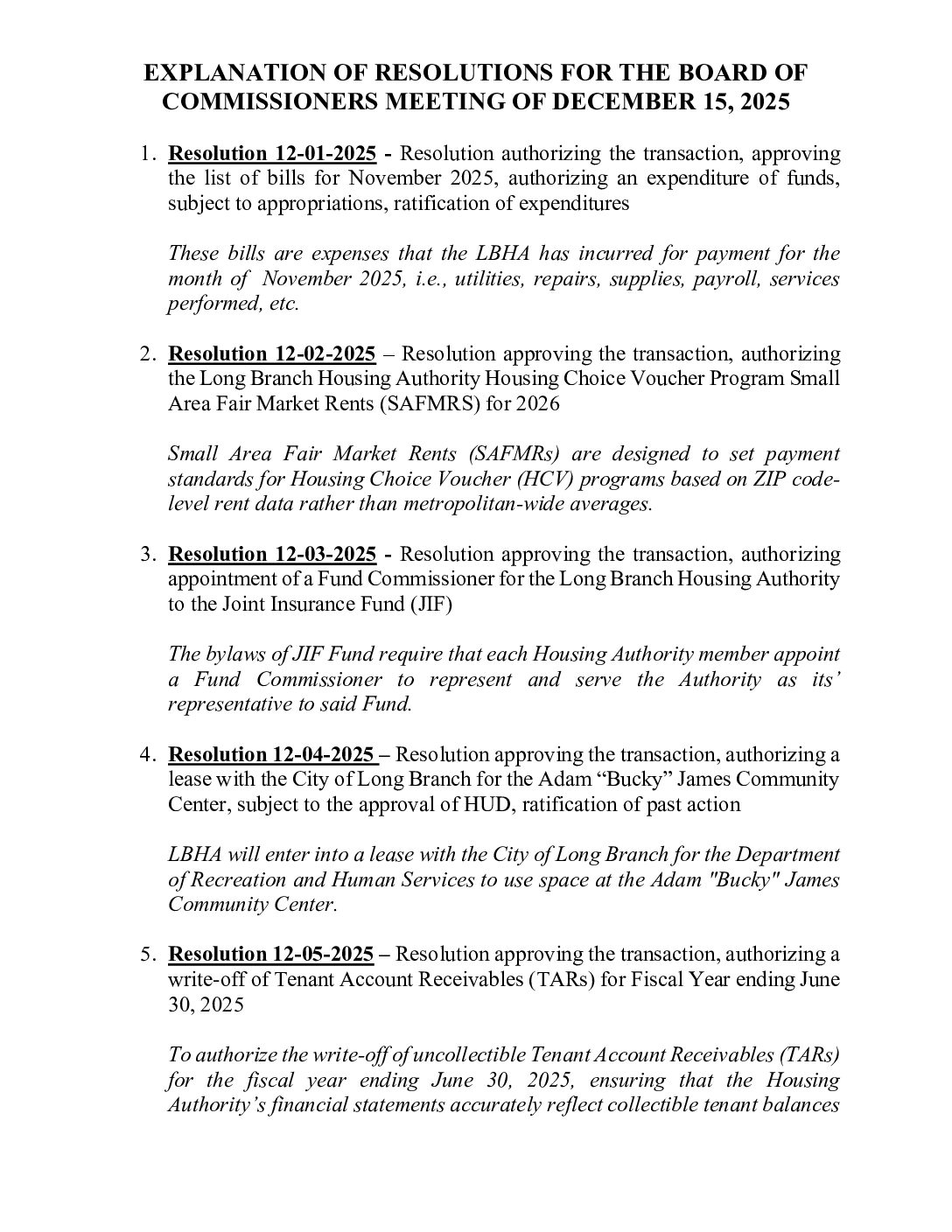 EXPLANATION OF RESOLUTIONS FOR THE BOARD OF COMMISSIONERS MEETING OF DECEMBER 2025 Gallery EXPLANATION OF RESOLUTIONS FOR THE BOARD OF COMMISSIONERS MEETING OF DECEMBER 2025 Rich Kelly2025-12-14T08:36:43-05:00 EXPLANATION OF RESOLUTIONS FOR THE BOARD OF COMMISSIONERS MEETING OF DECEMBER 2025Rich Kelly2025-12-14T08:36:43-05:00
